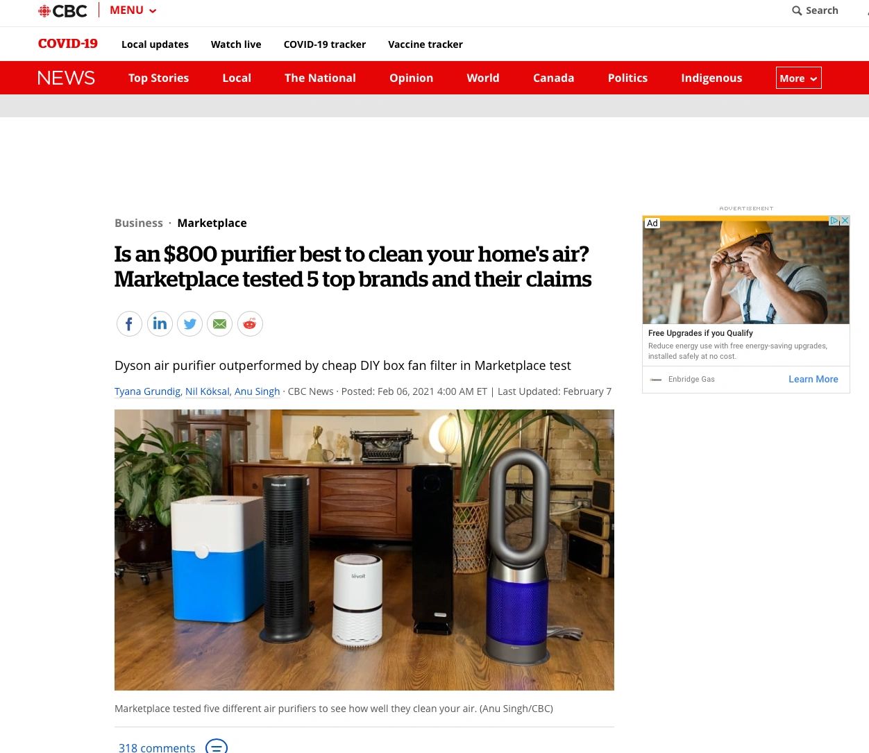 We were just featured on CBC’s Marketplace on Friday in one of their stories about portable air purifiers and indoor air quality testing. We have been on CBC Marketplace several times over the past decade and always enjoy working with them.